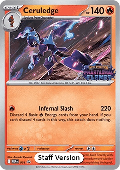 ME: Mega Evolution Promo Ceruledge [Staff] Pokémon - Fire Types: Stage 1 All Pokémon TCG card images © The Pokémon... Read more